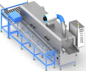 - Conveyorised industrial parts washing machines for inline cleaning between machining cells or assembly stations.